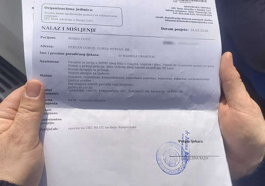 Zbog lošeg zdravstvenog stanja, kako navodi, prevezen je u Dom zdravlja, a potom i u Univerzitetski klinički centar Republike Srpske.