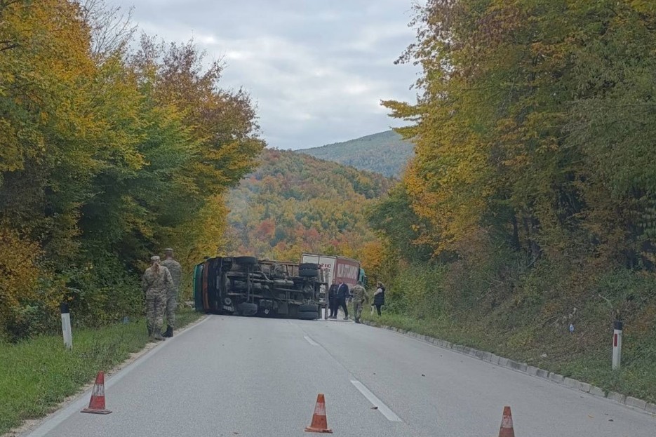 Kako javljaju čitaoci “Nezavisnih novina”, kamion se prevrnuo na magistralnom putu.